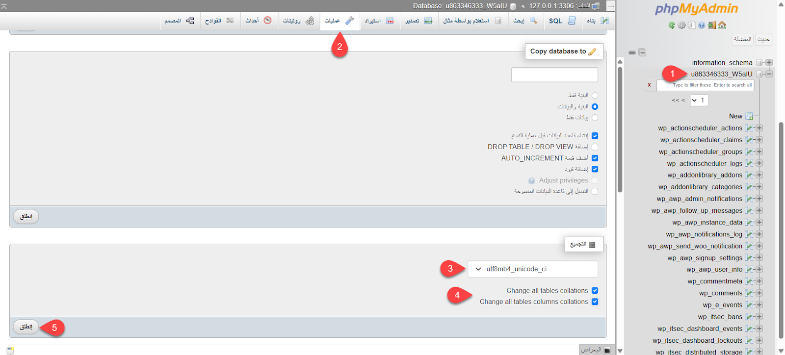- تأكد من ترميز قاعدة البيانات: عندما تقوم بإنشاء موقع جديد تأكد من أن ترميز قاعدة البيانات UTF-8، وكذلك الأمر عند استيراد المحتوى من مكان آخر.