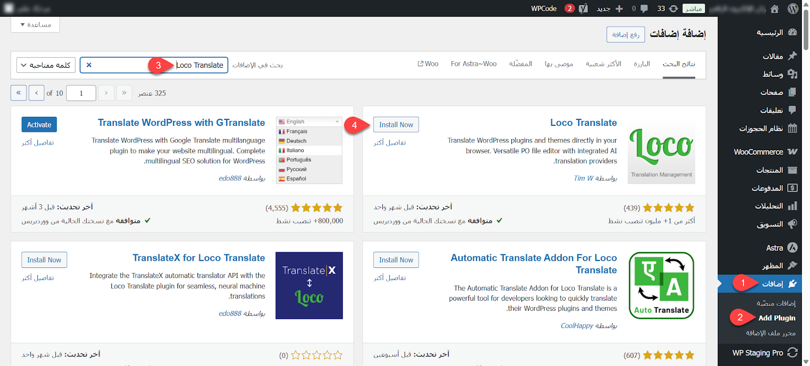 وفي حال كان كل شيء محدثًا واستمرت المشكلة بالظهور، فعندها كنت ألجأ إلى استخدام إضافة مخصصة لترجمة الكلمات المفقودة أو الغير دقيقة في لوحة التحكم، ومن الإضافات التي أعتمد عليها إضافة Loco Translate التي توفر إمكانية البحث عن أي كلمة إنجليزية في لوحة التحكم واستبدالها بالكلمة العربية الصحيحة.