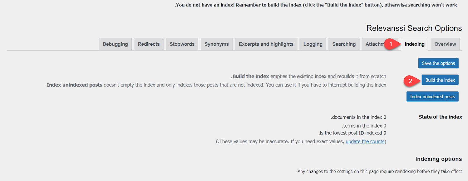 عند تفعيل الإضافة على الموقع أعيد فهرسة محتوى الموقع من خلالها لأضمن قيام الإضافة ببناء قاعدة بيانات خاصة بها من أجل تحسين دقة ونتائج عمليات البحث في اللغة العربية، كما أضبط الإعدادات الأساسية فيها مثل تفعيل البحث داخل كامل المحتوى والتعليقات وترتيب النتائج حسب صلتها بالأمر الذي يبحث عنه الزائر.