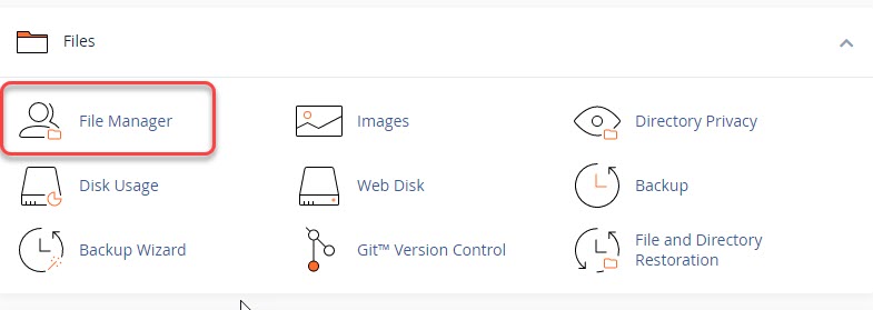 من أجل عمل نسخة احتياطية لموقعك، ادخل إلى لوحة التحكم بالاستضافة لديك، ثم انقر على أيقونة مدير الملفات (File Manager) لعرض الملفات المخزنة على استضافتك وإدارتها.