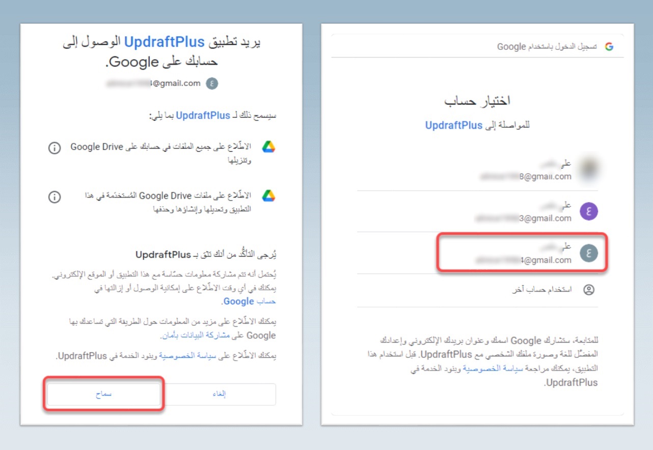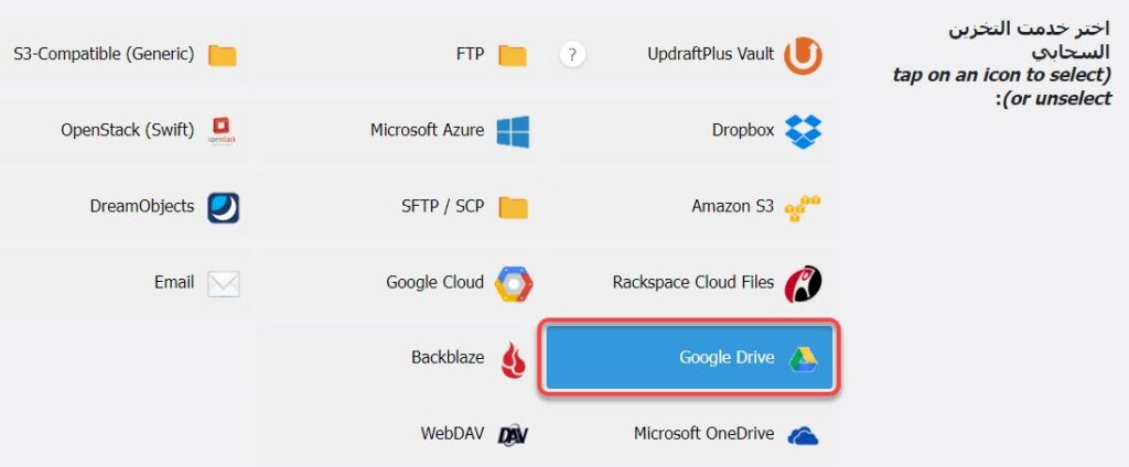 ربط إضافة UpdraftPlus مع جوجل درايف