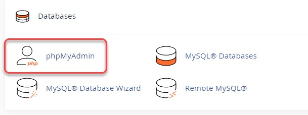 لإنشاء نسخة احتياطية لقاعدة بيانات موقعك يدويًا، سجل الدخول إلى لوحة التحكم بالاستضافة لديك، ثم انتقل إلى أداة إدارة قواعد البيانات phpMyAdmin عبر النقر على أيقونتها الموجودة في قسم (Databases).