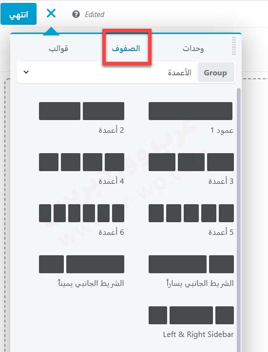 يمكنك إضافة ما تريده من الصفوف، علمًا أن الصف الواحد قد يتكون من عمود واحد وحتى 6 أعمدة. كما يمكنك اختيار أن يظهر الشريط الجانبي ناحية اليمين أو ناحية اليسار أو على كلا الجانبين.