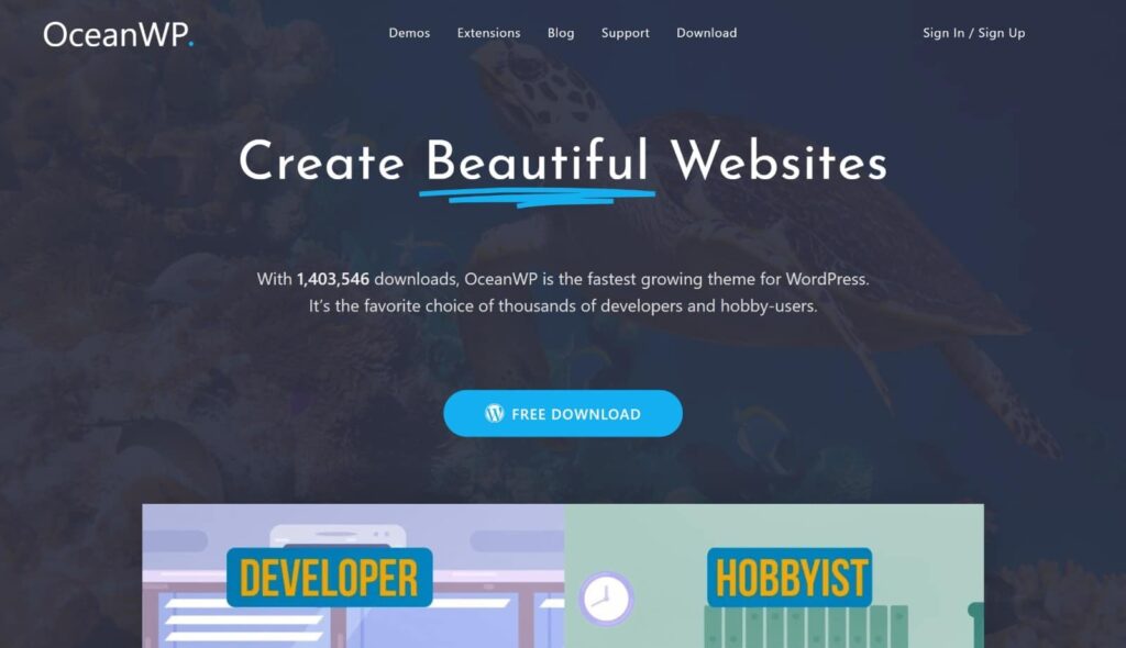 يعتبر قالب Ocean WP واحدًا من أشهر قوالب ووردبريس المجانية الذي يصلح في الاستخدام للعديد من أنواع المواقع مثل المدونات ومواقع الأعمال والمتاجر الإلكترونية لما فيه من أدوات التخصيص وقد حصل على أكثر من 700k تنصيب نشط والكثير من المراجعات الإيجابية من المستخدمين.