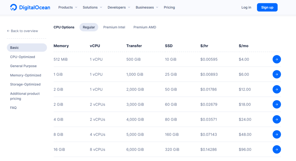 تبدأ تكلفة الاستضافة الأساسية من Digital Ocean من 4 دولار شهريًا، أي تصل تكلفة الساعة من الاستهلاك إلى 0.00595 دولار، وتوفر ضمان استرداد الأموال لمدة 30 يوم، وتقدم رصيد مجاني يصل إلى 200 دولار للحسابات الجديدة قابل للاستخدام لمدة شهرين.