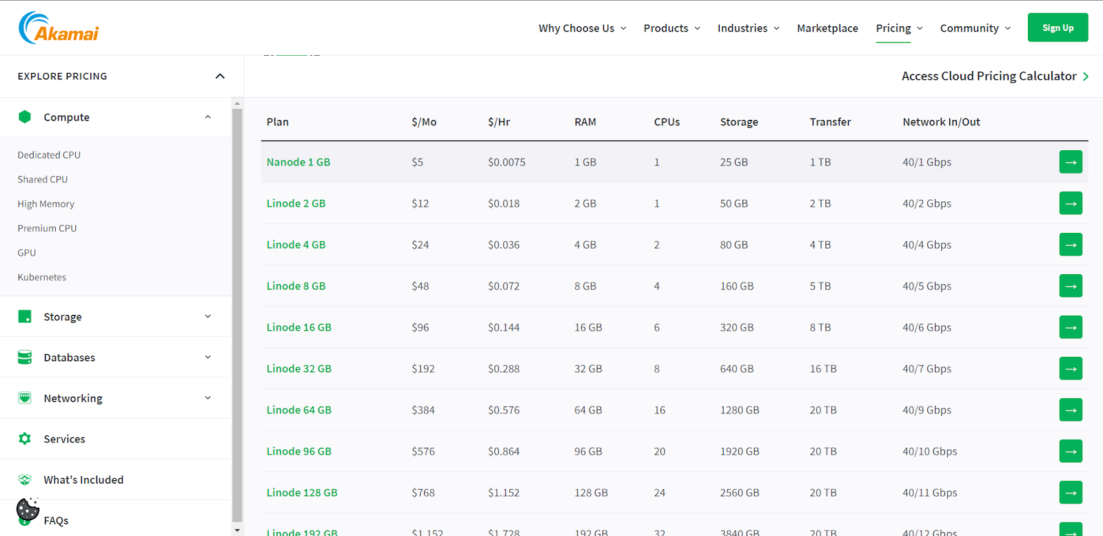 تعتمد شركة Akamai على نظام الدفع لكل ساعة من الاستخدام، وتوفر خيارات استضافة تبدأ من 5 دولار بمواد مخصصة للشركات والمواقع الناشئة، مع إمكانية تخصيص خادم بموارد مخصصة بما يتناسب مع متطلبات موقعك غير الخيارات المتاحة في صفحة التسعير، ويمكن معرفة تكلفة تقديريه لها بالاعتماد على حاسبة Cloud Computing Calculator الخاصة بهم.