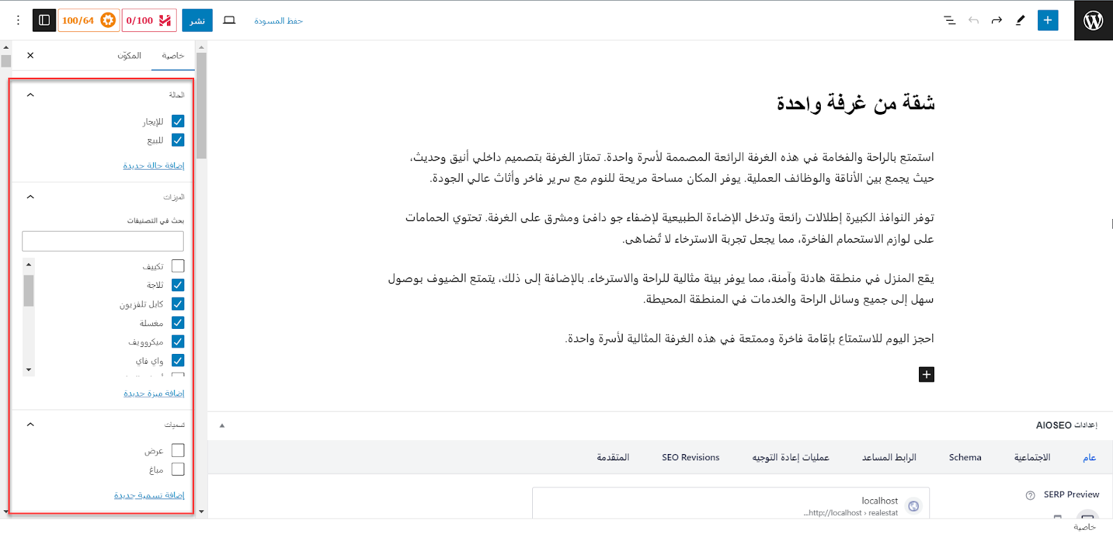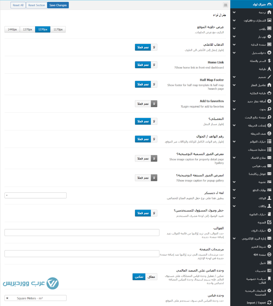 - لوحة تحكم داخلية لتخصيص الموقع العقاري بالكامل.