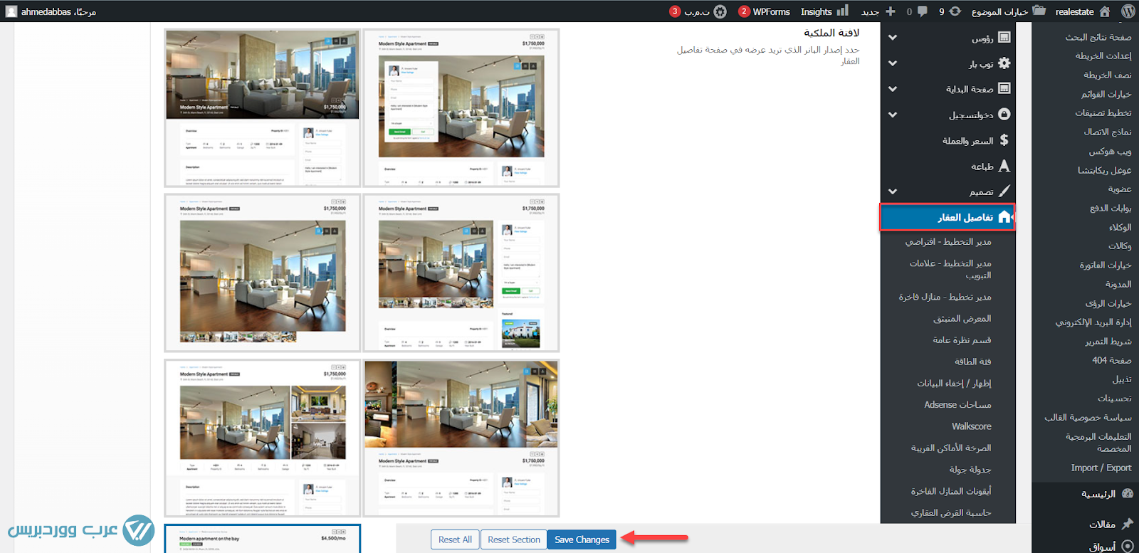 3- تثبيت قالب ووردبريس مخصص للمواقع العقارية
