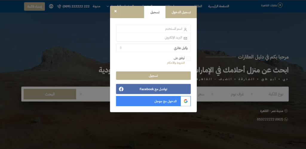 9- السماح للزوار أو الوكلاء بالتسجبل وإدارج العقارات داخل المنصة