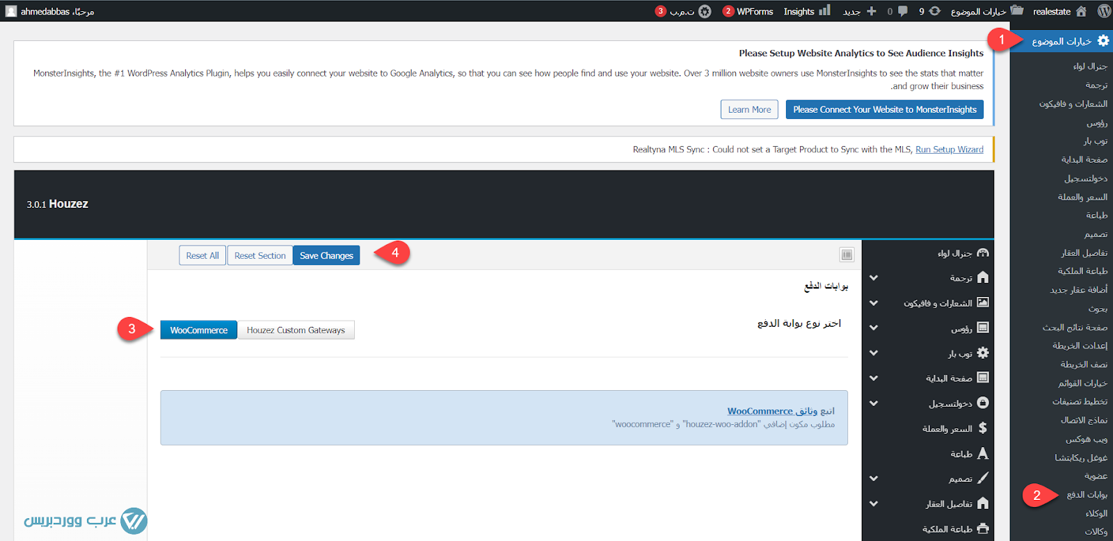 بتفعيل نظام المدفوعات عبر WooCommerce، يمكنك إضافة بوابات الدفع المحلية والدولية لمتجرك باستخدام نظام WooCommerce بدلاً من الاعتماد على نظام مدفوعات Houzez الذي يدعم بوابات الدفع الدولية فقط. ثم يمكنك اتباع مقال "إضافة بوابات الدفع العالمية والمحلية للمتاجر الإلكترونية" لإضافة بوابات الدفع على موقعك العقاري.