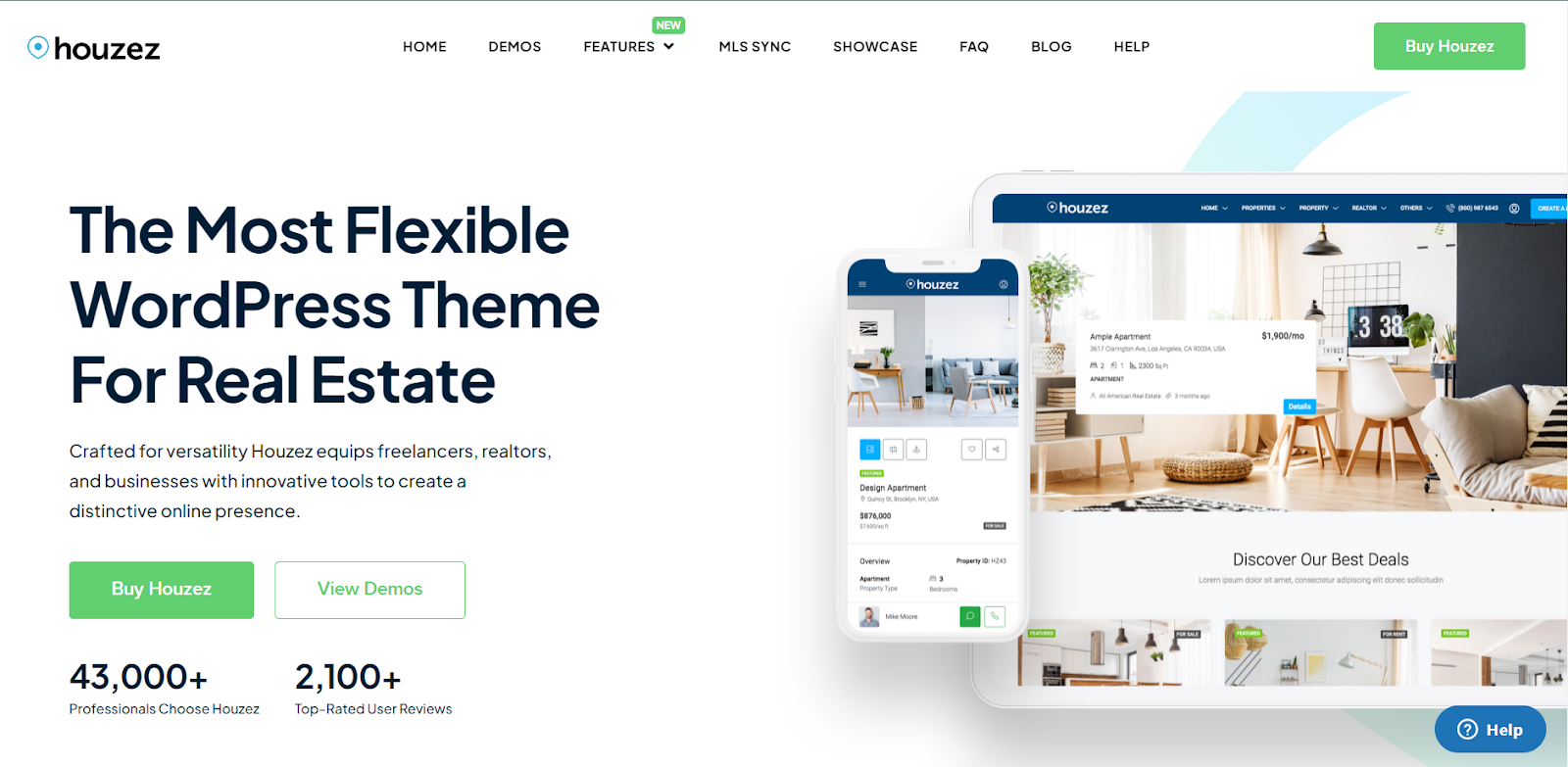 يوفر نظام ووردبريس مجموعة كبيرة من القوالب المجانية والمدفوعة للمواقع العقارية، ومن بين أفضل هذه الخيارات قالب Houzez. ولذلك لأن القالب يُوفر كافة متطلبات المواقع العقارية الأساسية، ومن ميزاته: