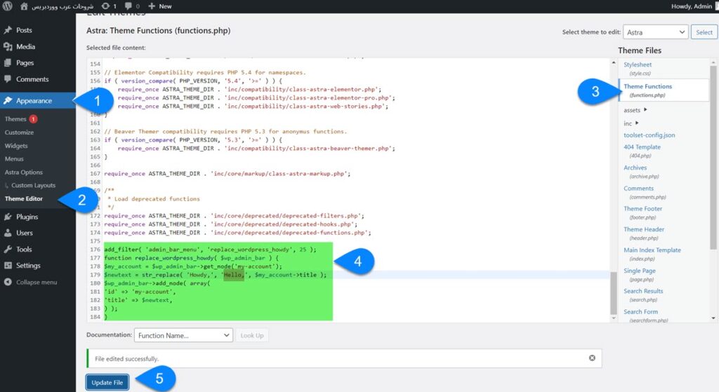 3 – تغيير أو إزالة Howdy Admin باستخدام Code