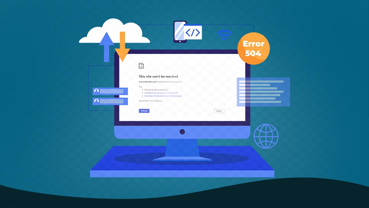 تظهر مشكلة الخطأ 504 نتيجة خلل في الاتصال بين المتصفح وشركة الاستضافة التي تستضيف موقعك، ومما يسبب حدوثه مشكلة في الإنترنت على حاسوبك الشخصي، أو تحديث اسم النطاق من فترة قريبة، وذلك لأن المتصفح ما زال يتصل بالنطاق القديم، أو نتيجة لجدار الحماية وإعداده السيء، بالإضافة لأسباب أخرى مثل موارد خطة الاستضافة أو خطأ في خادم الموقع وغيرها.