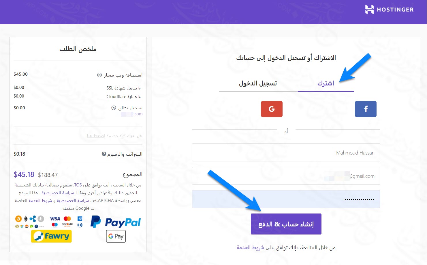 احجز الاستضافة والدومين