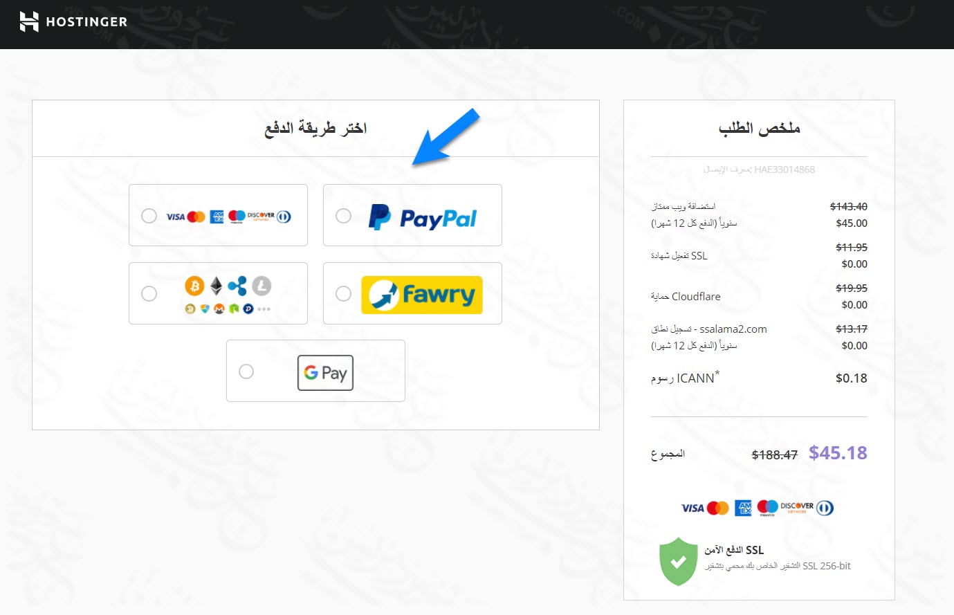 طرق الدفع على هوستنجر لحجز استضافة