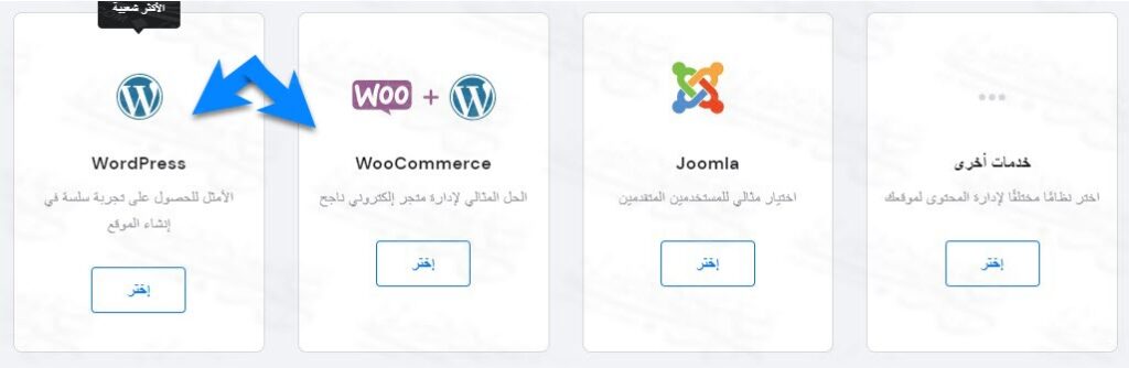 يمكنك عبر المثبت التلقائي إنشاء الكثير من أنواع المواقع، وستجد أن ووردبريس هو الأكثر شعبية بين جميع الأنواع، كما يمكنك إنشاء ووردبريس مضاف له ووكومرس لإنشاء متجر إلكتروني عبر الووردبريس.