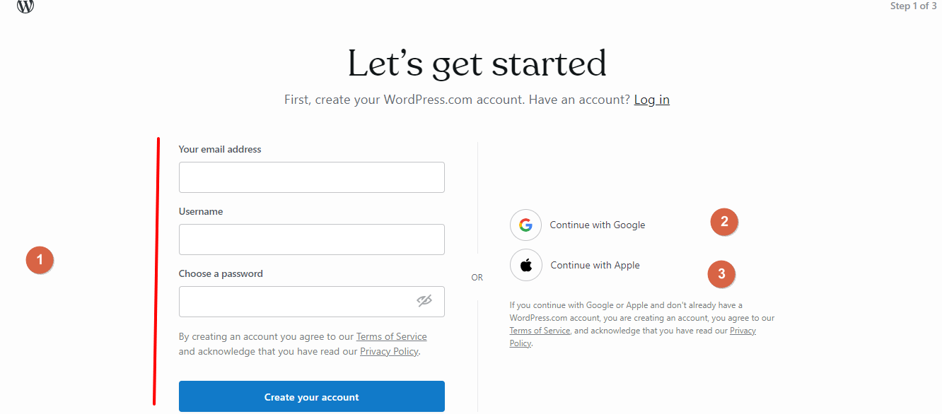 في هذه الجزئية من المقال سنتعرف على الخطوات العملية التي تتيح لك إنشاء موقع ووردبريس مجاني والتمتع بالميزات التي يقدمها لك كصاحب موقع إلكتروني، وإليك الخطوات الواجب القيام بها:
