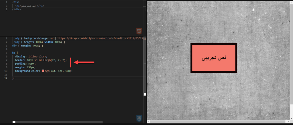 ستلاحظ أن نص التعليق لم يظهر في نتيجة كود CSS، وكذلك تم إلغاء تفعيل كود CSS الخاص بالخلفية والحجم عن إضافة رمز "/*" في بداية ونهاية الكود.