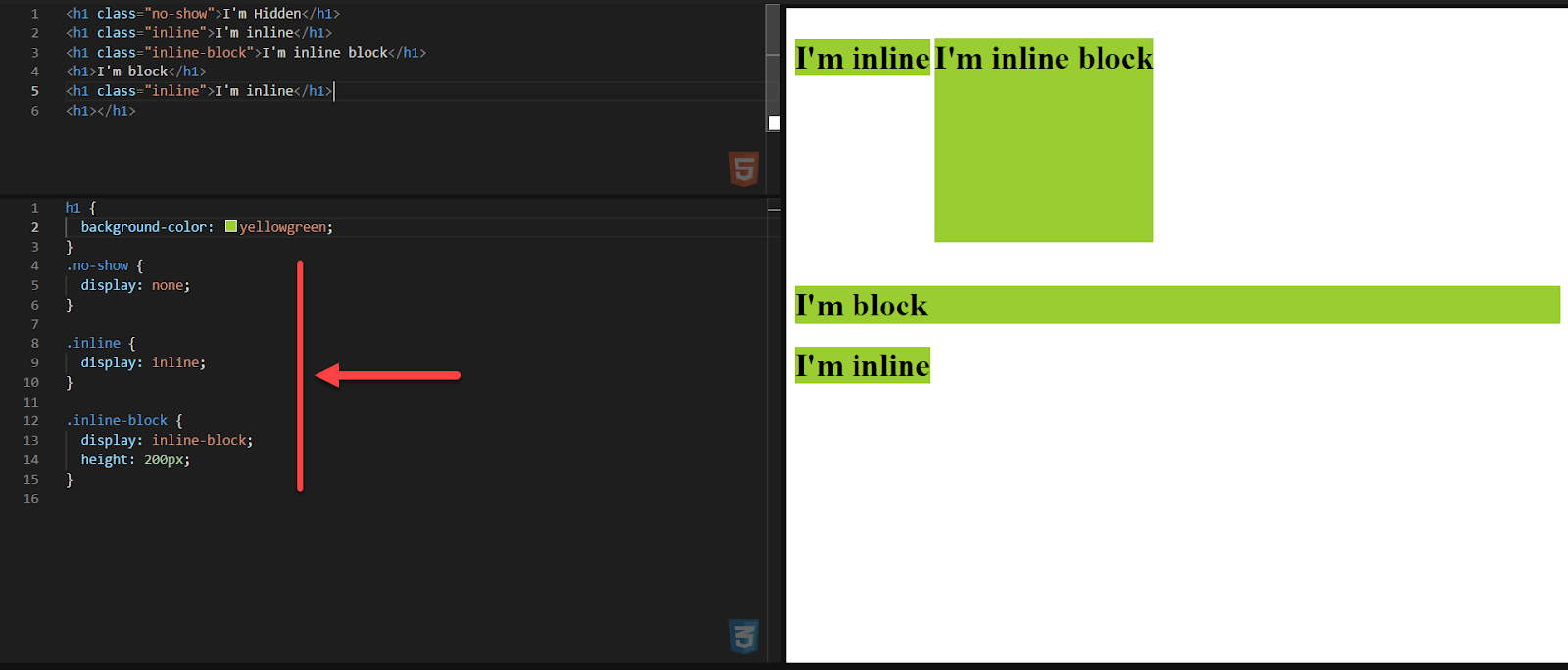 - Block: تقوم بتحديد نهاية العرض، وهذا يعني أن العنصر التالي سيبدأ من سطر جديد.