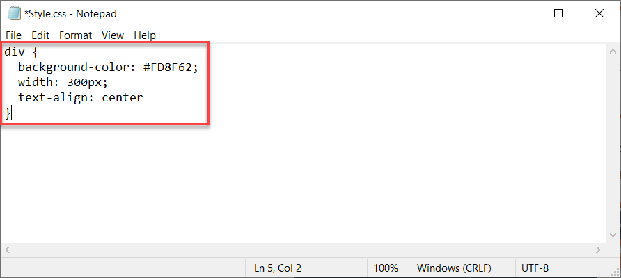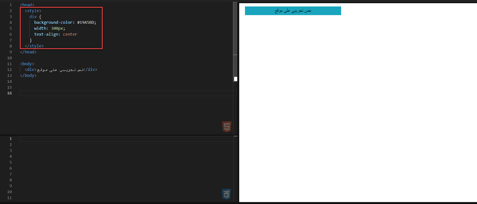 - كتابة كود CSS المطلوب داخل علامتي <style> </style>