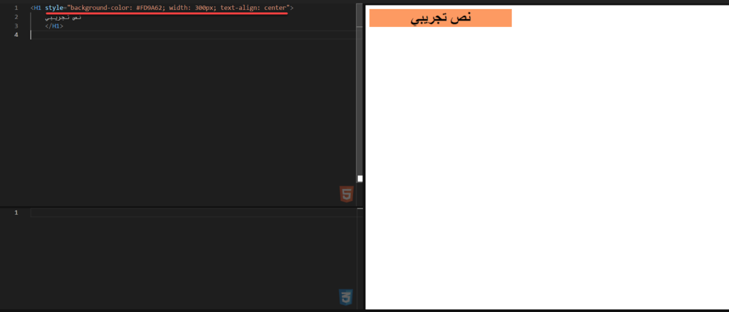 <H1 style="background-color: #FD9A62; text-align: center">نص تجريبي</H1>