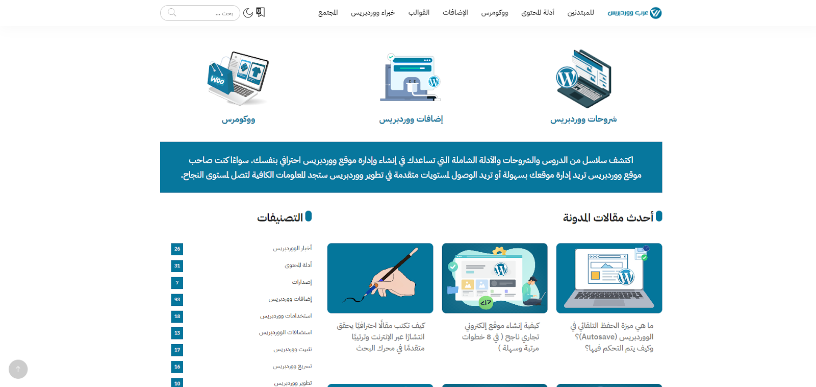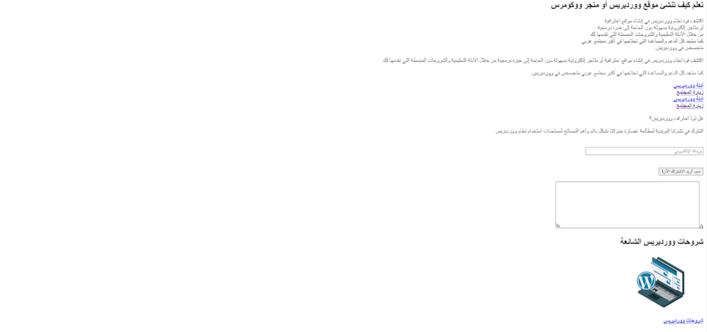على سبيل المثال، الواجهة الرئيسية لموقع عرب ووردبريس كالتالي: