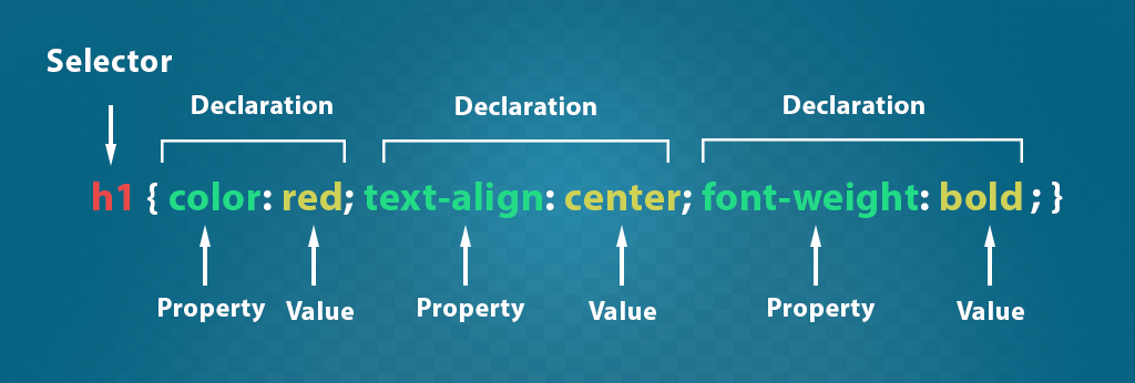 التصريح Declaration يضم خصائص كود CSS، حيث يوضح التعديلات المطلوبة للعناصر، ويكتب مباشرًا بعد تحديد المحدد ويكون داخل علامتي القوس "{ }"، ويتكون التصريح من عنصرين الخاصية Property، والقيمة Value.
