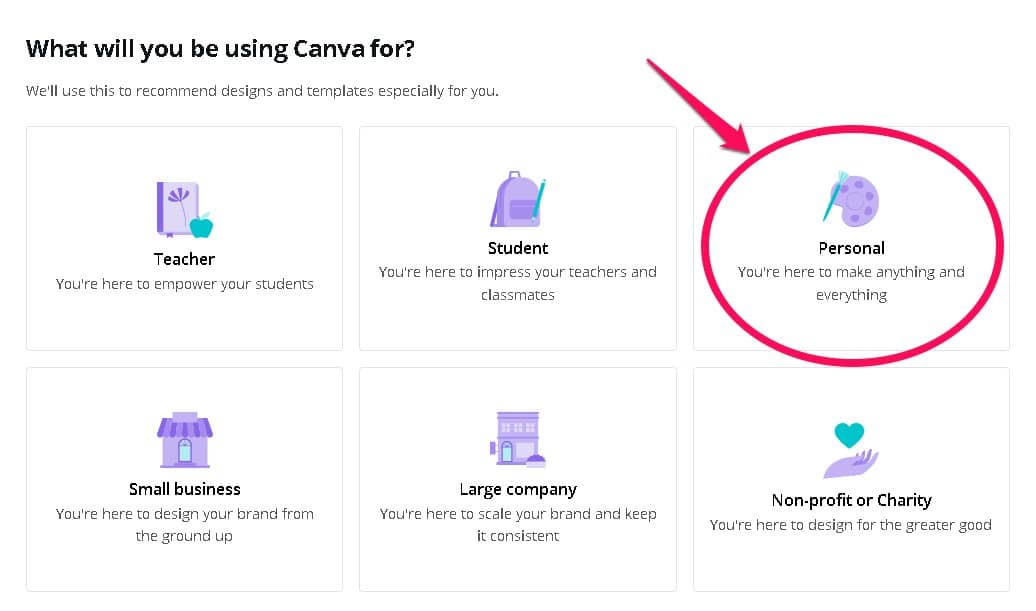 ثم سيطرح عليك سؤالًا عن الهدف من استخدامك للتطبيق، وأنا هنا اخترت الخيار الشخصي.