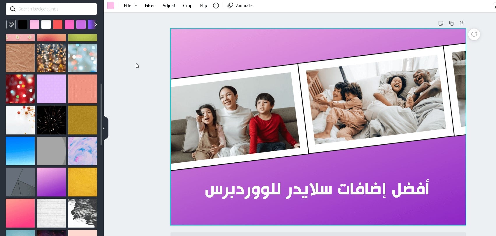 يمكنك إضافة خلفيات مميزة وجاهزة بدل شكل المستطيل الذي جعلناه خلفية. احذف مستطيل الخلفية واختر أحد الخلفيات الجاهزة.
