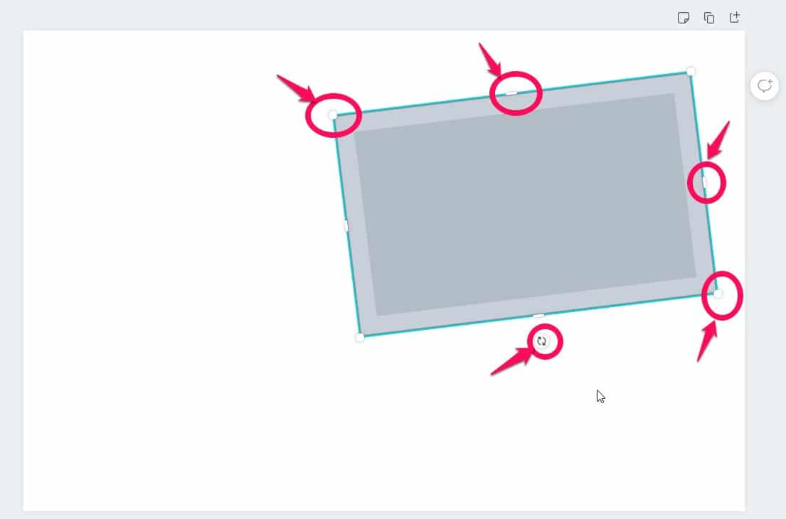 استخدم الخيارات على أطراف الشكل لتغييره إلى مستطيل وتدويره قليلًا. جرب ذلك عدة مرّات وستعتاد عليها بسهولة.