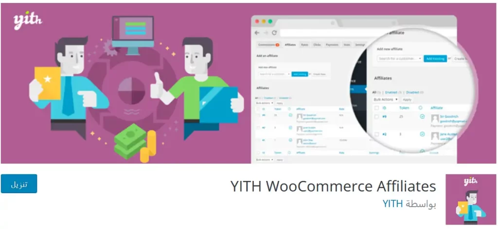 توفر لك إضافة YITH WooCommerce Affiliates بيئة عمل مناسبة، إذ أنها من إضافات التسويق الرقمي التي تساعدك على الوصول إلى أهدافك، التي تريد تحقيقها من خلال تطبيق استراتيجية التسويق بالعمولة، إذ تتميز الإضافة بقدرتها على: