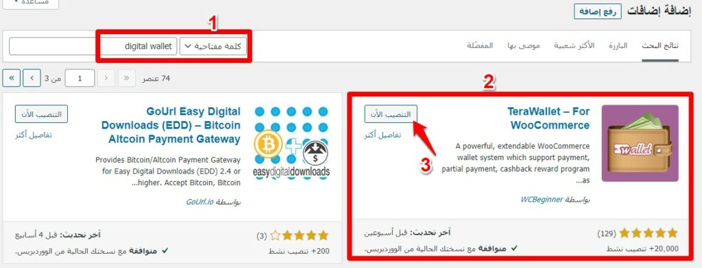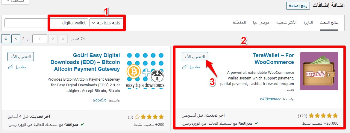 - سنقوم بتنصيب Tera Wallet For Woocommerce (تعتبر من أفضل الإضافات في المجال، ولها أكثر من 20 ألف تنصيب وتقييماتها 5 نجوم)