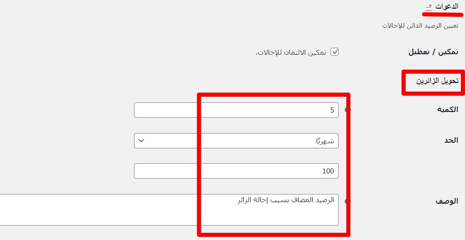 يمكنك تحديد حد أدنى للمسجلين كشرط للحصول على المقابل المادي (مثلا حد أدنى تسجيل 10 أعضاء، وشحن 10 دولار مقابل تحويل 100 عضو...)