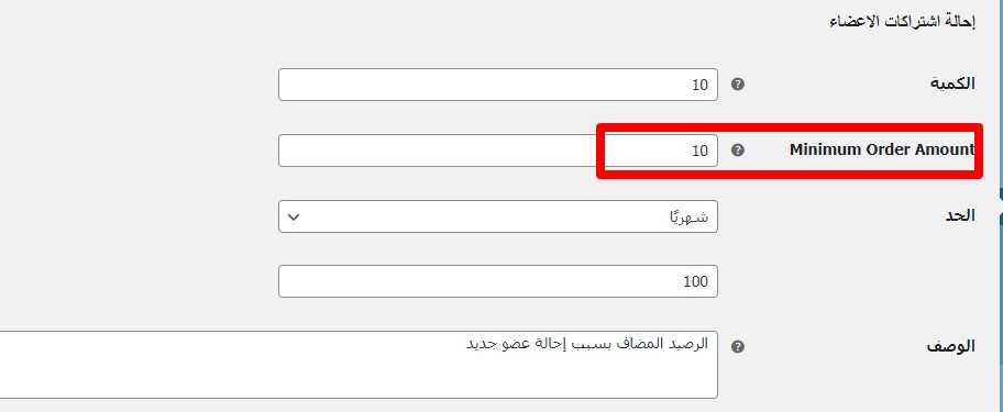 - ضع الحد الأدنى لمبلغ سلة التسوق، والحد الأقصى لمبلغ الاسترداد، المسموح بهما