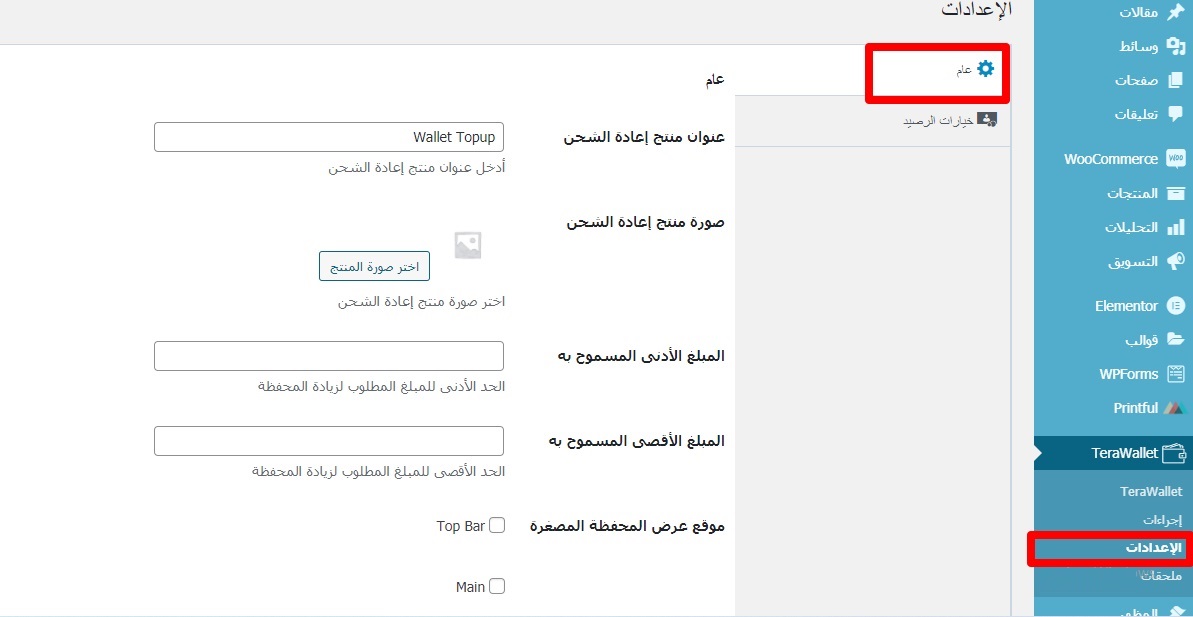 - عنوان وصورة منتج إعادة الشحن: الاسم التلقائي Wallet Topup، ويمكنك تغييره