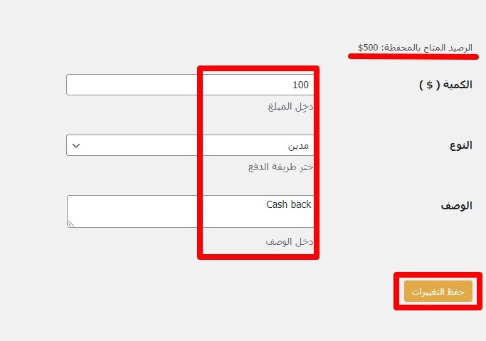 - نوع استرداد النقود: هل تريد أن يكون مبلغ ثابت؟ أو نسبة مئوية؟ إن كان مبلغ ثابت قم بتحديده