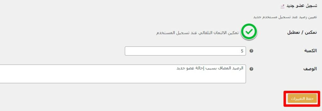 - ضع علامة على تمكين الائتمان التلقائي عند تسجيل المستخدم