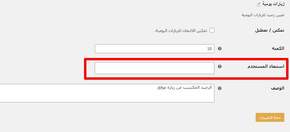 بنفس الطريقة يمكنك إضافة رصيد مقابل الزيارات اليومية للعملاء، ويمكنك أيضًا أن تستبعد بعض المستخدمين مثل فريق العمل (بالتأكيد ستكون له زيارات متعددة يوميا)