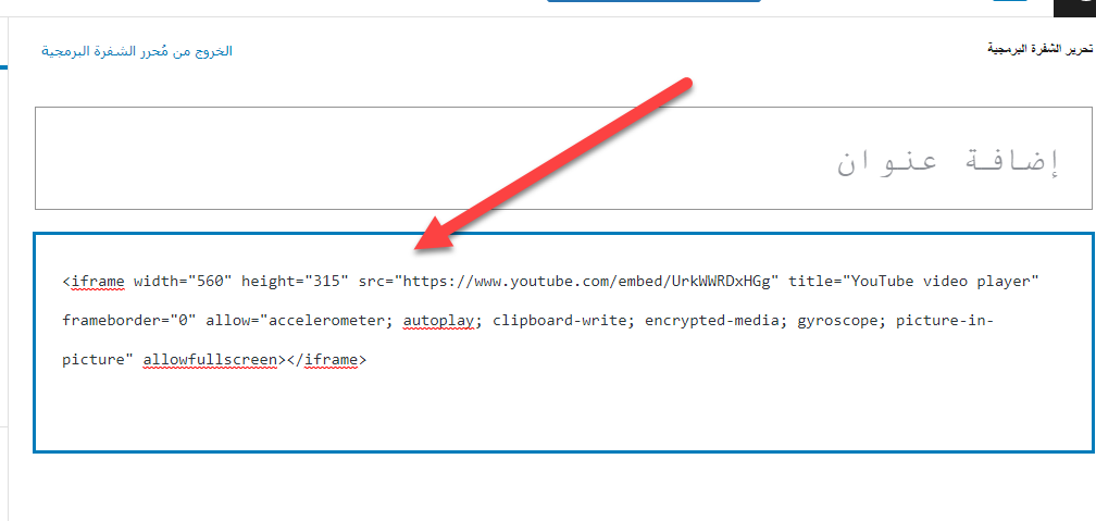 قم بلصق الكود داخل لوحة تحرير الشفرة البرمجية للمقالة أو الصفحة التي تريد أن يظهر الفيديو داخلها: