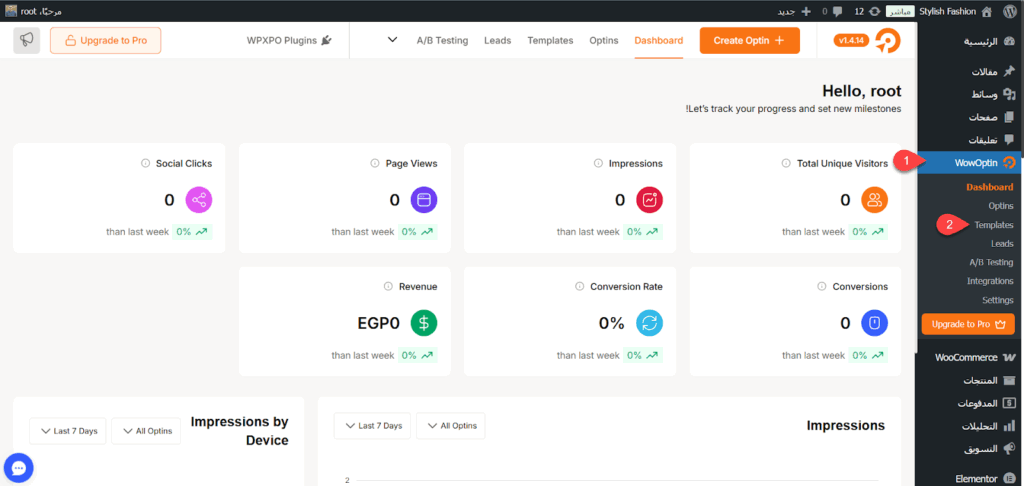 لوحة إدارة إضافة WOWOptin على ووردبريس