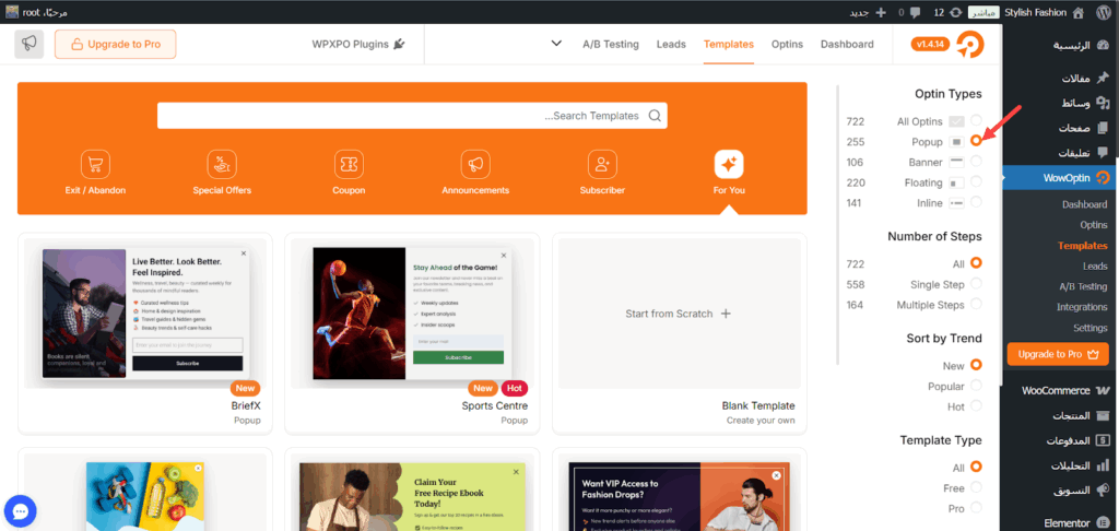 اختيار نموذج الإعلان المناسب من إضافة WOWOptin