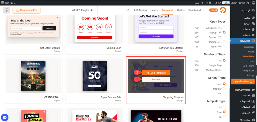 نماذج الإعلانات الجاهزة على إضافة WOWOptin