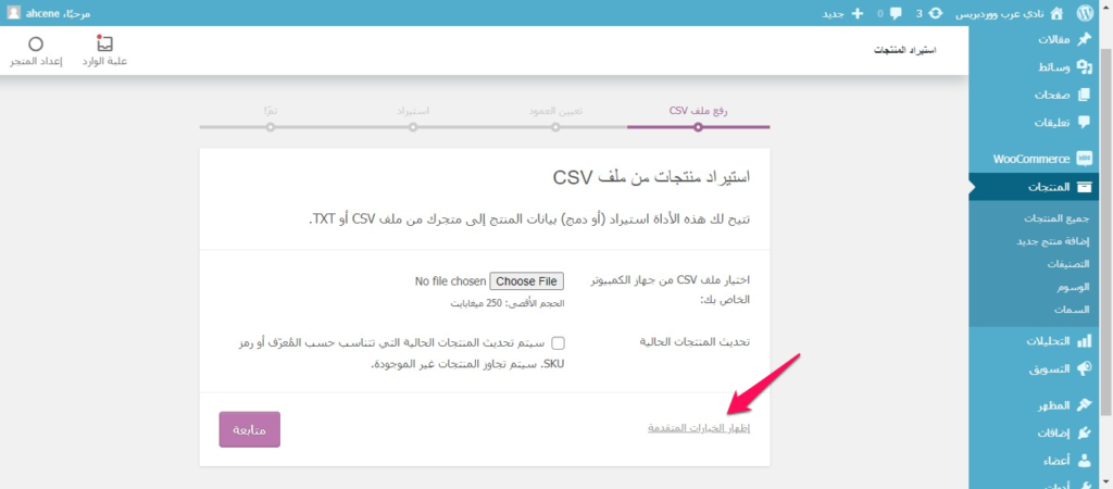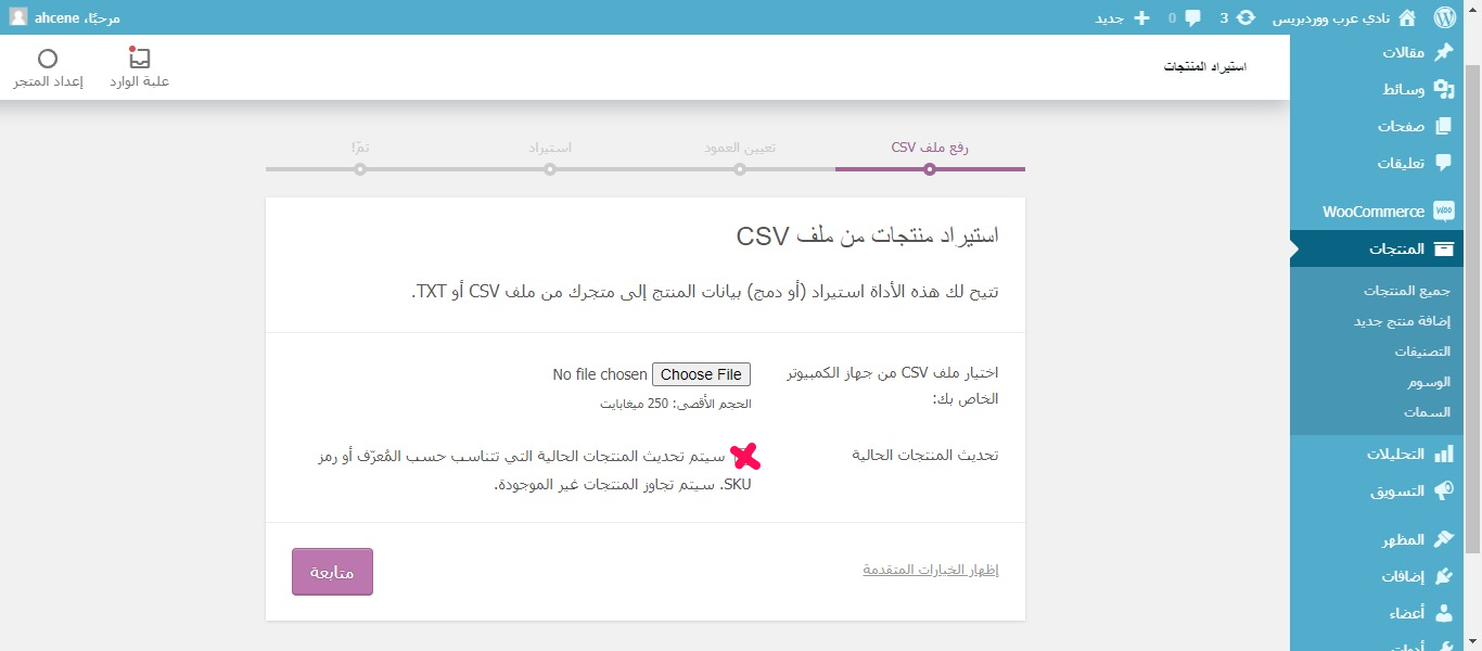 • بعد رفع الملف، اضغط على مُتابعة