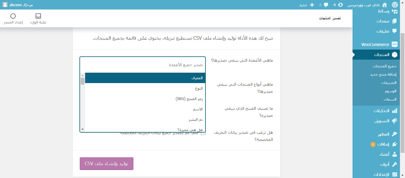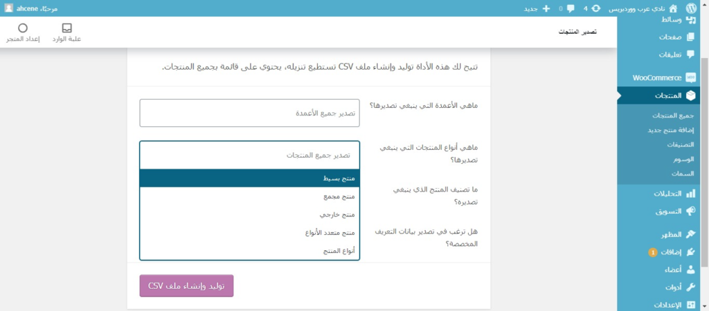 آلية تصدير منتجات متجر ووكومرس Export