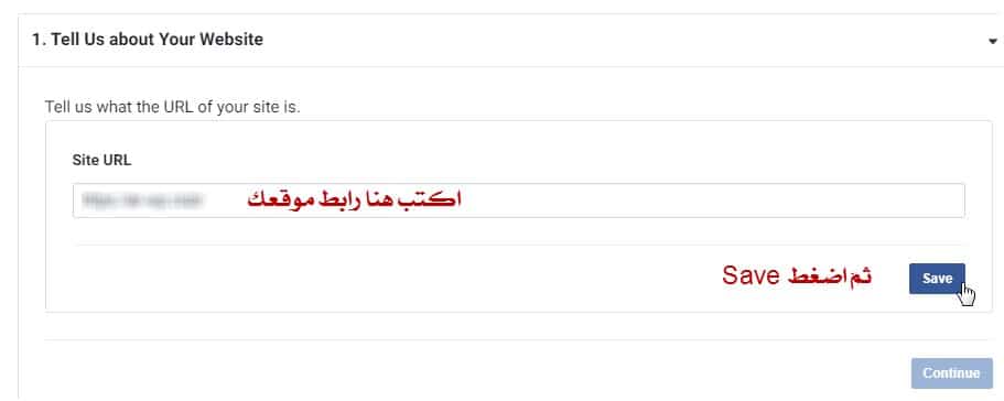 - حين تظهر إعدادات Web، املأ رابط موقعك، واضغط Save.