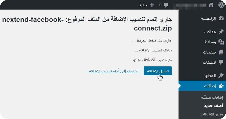- بعد انتهاء تنصيب الإضافة، اضغط على (تفعيل الإضافة).