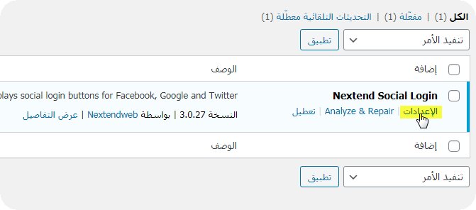 تحت الإضافة Nextend Social Login اضغط اختيار (الإعدادات)