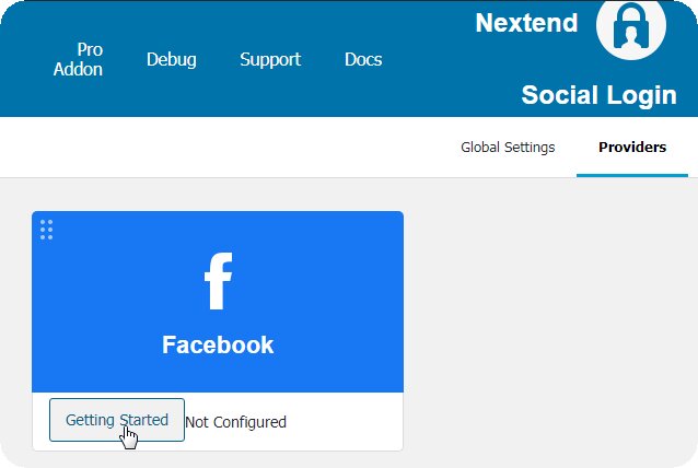 سينقلك هذا إلى صفحة Providers. ابحث هناك عن الفيسبوك، واضغط Getting Started.