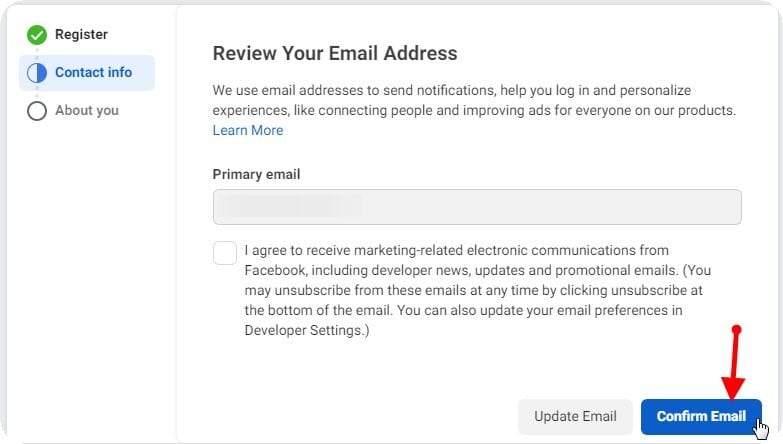 - تأكّد من أن البريد الإكتروني الخاص بك صحيح، واضغط Confirm Email