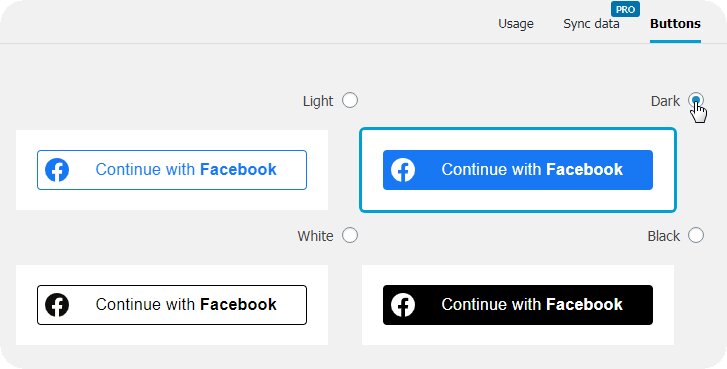 يمكنك ضغط خانة Buttons لتغيير الأزرار الّتي تظهر على تطبيق التّسجيل والدّخول: